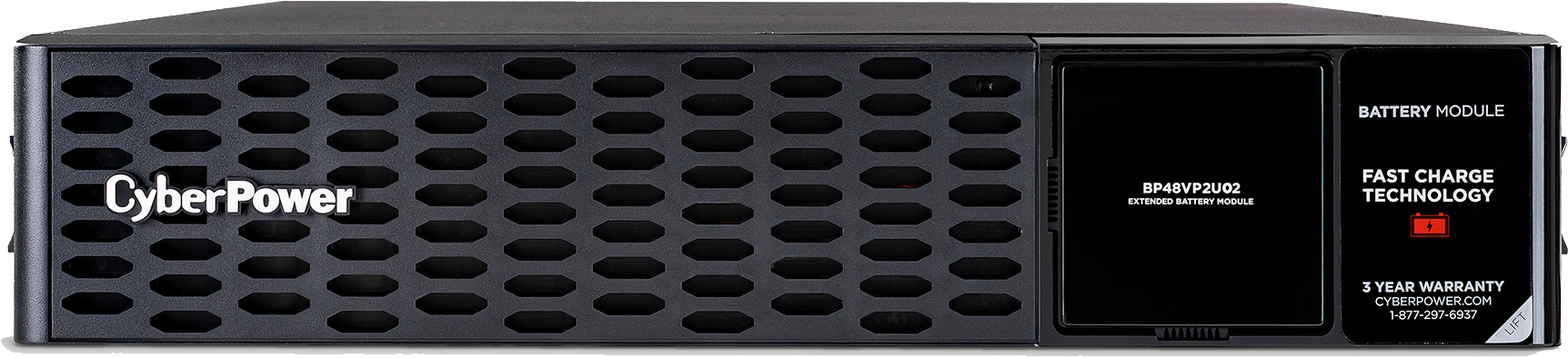 Extended Battery Modules (EBMs) from CyberPower, for select Smart App UPS models, ensure extended battery runtimes during power outages. Each rack/tower convertible EBM takes up 2U or 3U of rack space, depending upon the model, and can be installed in a tower form factor to match the UPS. The DC plug-and-play power connectors allow for daisy-chaining additional EBMs to an UPS system. The EBMs compatible with Smart App Online UPSes also have a built-in battery charger, providing Fast Charge Technology to quickly restore the backup power supply to full capacity Every CyberPower EBM has a three-year warranty.